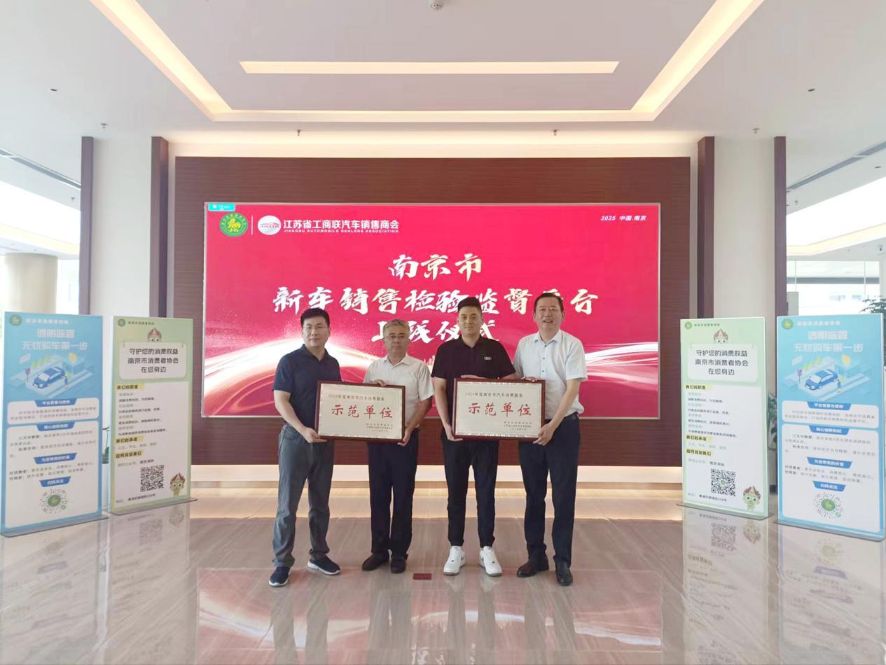 9月4日,南京市消费者协会联合江苏省工商联汽车销售商会在商会副会长单位江苏协众汽车集团南京汤山汽车产业园共同开展“南京市新车销售检验监督平台”上线仪式,标志着南京汽车消费领域资金监管迈入数字化、规范化新阶段,让消费者购车定金有了安全锁,交钱退钱都透明可查。南京市消费者协会副会长兼秘书长李国兴、监督部主任翟飞,江苏省工商联汽车销售商会副会长兼秘书长秦有跃、办公室主任袁梦,江苏户传科技有限公司总经理陈飞、项目总监葛楚洋,江苏苏测检测认证有限公司陈晶,江苏协众旗瑞汽车销售服务有限公司总经理张枫、南京协奥汽车销售服务有限公司销售总监贲庆等相关单位负责人参加了本次活动。